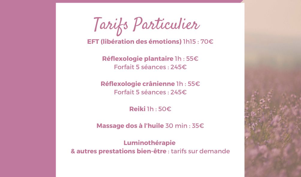 Prestations particulier Prestations entreprise Je me déplace sans frais dans un périmètre de 30km autour de Dijon. Au delà, 2€ seront facturés par kilomètre supplémentaire.